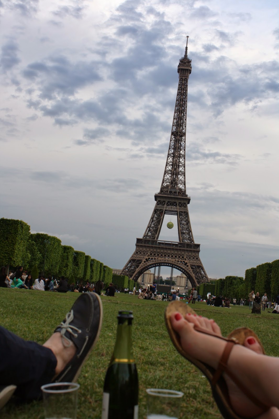 We picked up a mini-bottle of champagne and some plastic glasses, found a piece of grass in the park in front of the Eiffel Tower, and jsut fell over in its beauty.
